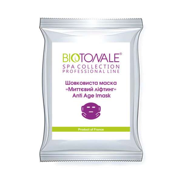 Шовковиста маска, просочена активними компонентами, коригує вікові зміни, стимулює регенерацію клітин шкіри, зволожує шкіру та зменшує глибину та кількість зморшок завдяки високому вмісту гіалуронової кислоти, яка інтенсивно стимулює синтез колагену фібропластами. Стовбурові клітини яблука мають високу відновлюючу дію, уповільнюють процеси старіння і захищають від фотостаріння. Аргірелін® розслаблює підшкірні м’язи та запобігає появі зморшок.